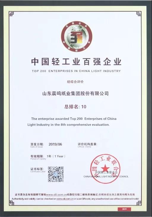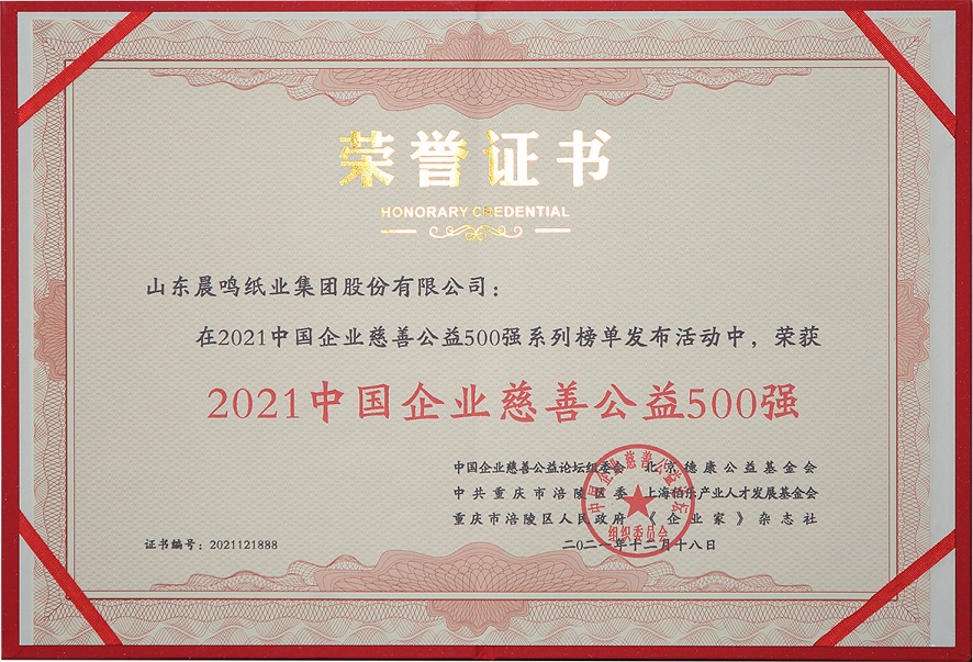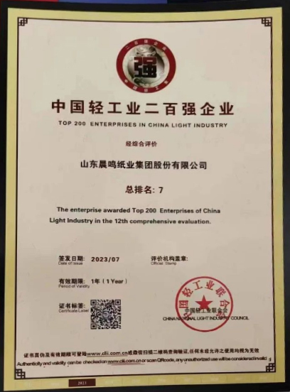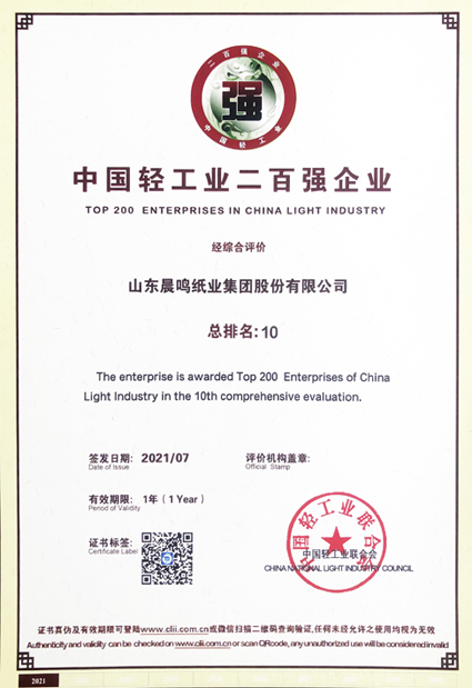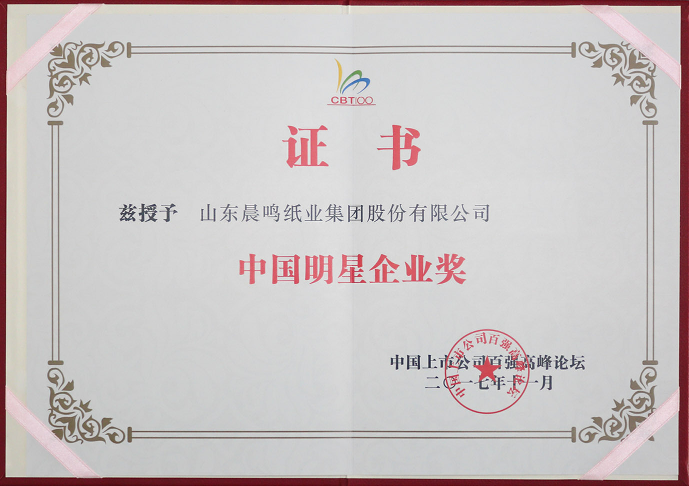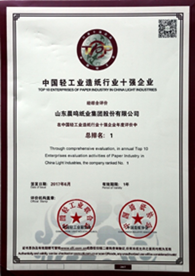 半個多世紀的探索和發(fā)展,讓晨鳴集團榮譽滿冠。晨鳴先后榮獲中國企業(yè)500強、中國制造業(yè)500強、輕工業(yè)全國十佳企業(yè)、中國出口名牌、全國五一勞動獎狀、中國企業(yè)管理杰出貢獻獎、全國生態(tài)文明建設(shè)十大新聞人物、全國精神文明建設(shè)先進單位、中國造紙工業(yè)環(huán)境友好企業(yè)、中國企業(yè)集團納稅五百強、中國工業(yè)行業(yè)排頭兵企業(yè)、全國造紙行業(yè)勞動關(guān)系和諧企業(yè)、山東省循環(huán)經(jīng)濟示范單位、低碳山東標桿企業(yè)等多項榮譽稱號。
